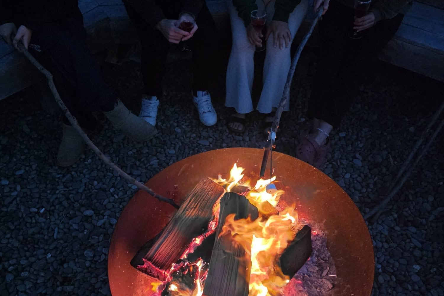 A natural spring at the base of Mt Lookout feeds our wood-fired hot tubs. Positioned for privacy, they offer a peaceful soak in pure mountain mineral water. Your experience includes preparation, lighting, and stocking, so the tub is hot and ready on arrival.